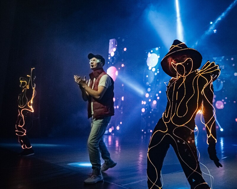 Интерактивный спектакль для детей и родителей, соединивший лазерное/световое/пиксельное шоу с танцевальной/ритмической/звуковой игрой со зрителями.